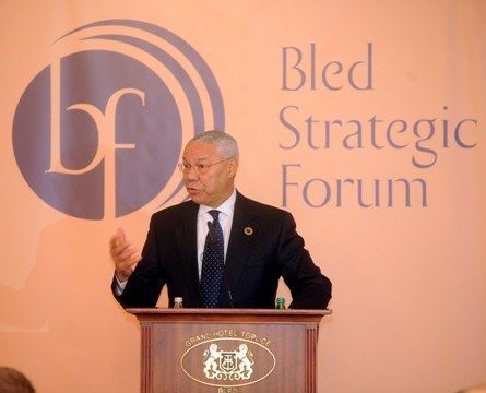 The Minister further explained that, once again, Bled plays host to top international policy makers, private sector leaders and experts in the field of geopolitics, including the former U.S. Secretary of State, Colin L. Powell, the Prime Minister of the Kingdom of Belgium, Yves Leterme, the Secretary-General of the League of the Arab States, Amer Moussa, the Minister of National Defence of Canada, Peter Gordon MacKay, the Minister of State for External Affairs of the Republic of India, Preneet Kaur, the Deputy Minister of Foreign Affairs of the Federative Republic of Brazil, Antonio de Aguiar Patriota, the European Commissioner for the Environment, Janez Potočnik, the Chair of the Reflection Group, Felipe González, and the Deputy Secretary-General of the OECD, Richard A. Boucher.